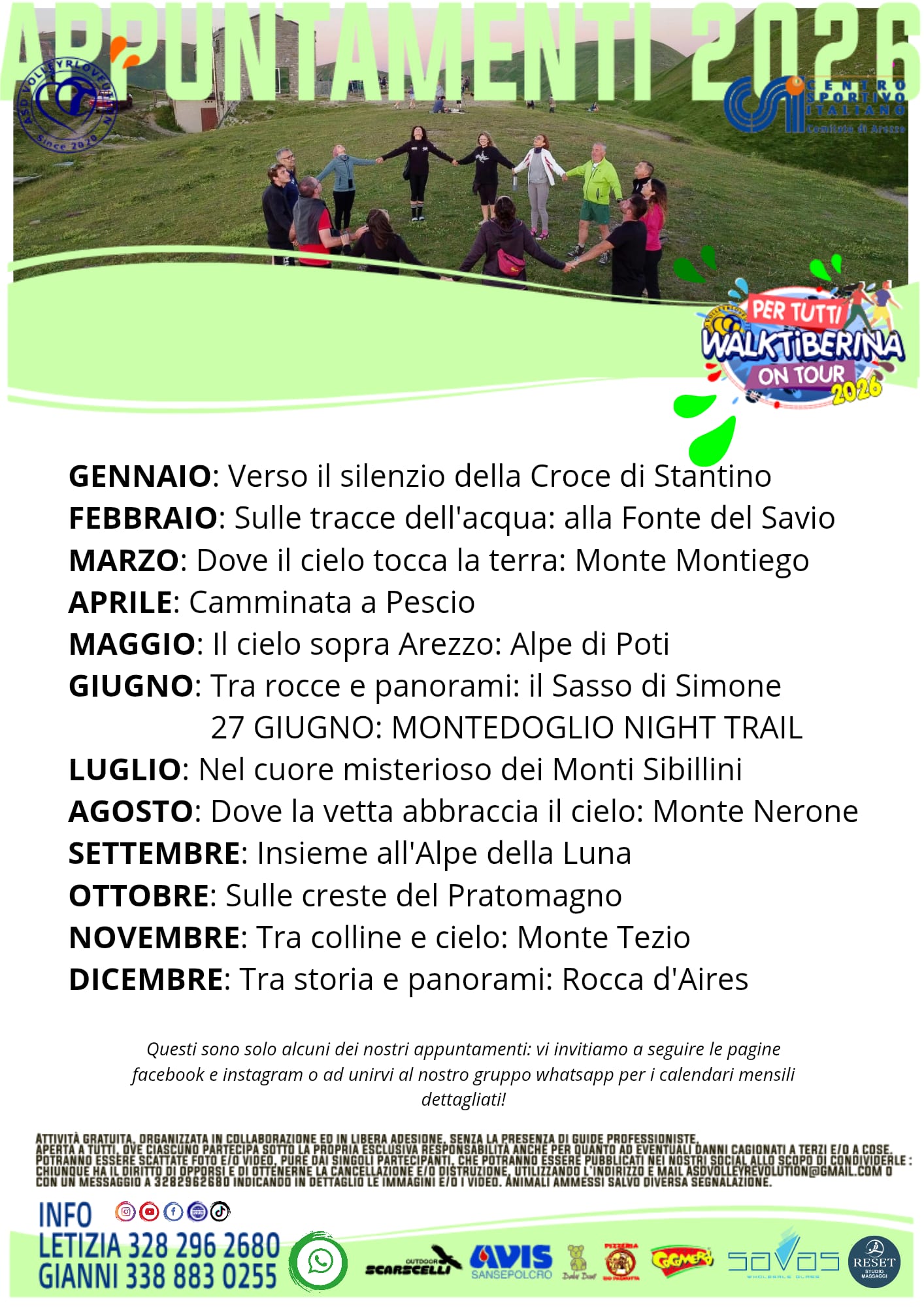 All events in the 2026 calendar organised by the Walktiberina On Tour Association.